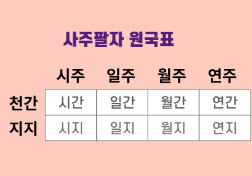 사주는 연주(年柱), 월주(月柱), 일주(日柱), 시주(時柱)로 구성되어 있어요.
