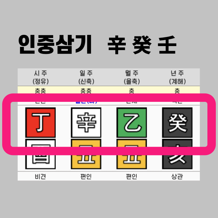 ✅ 인중삼기(人中三奇): 신(辛)·임(壬)·계(癸) 조합